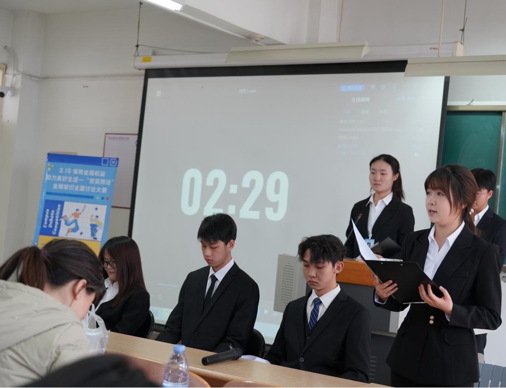 比赛严格遵循主题陈述—组内辩论—总结陈词的三段式赛制。各参赛队伍依序登台发表主题演讲后,通过限时自由辩论环节展开思想碰撞。选手们凭借深厚的专业素养与卓越的语言表达能力,展现出对金融监管框架、科技伦理边界、消费者权益保护等核心议题的深刻理解。在逻辑严密的攻防中,既有对前沿理论的创新阐释,亦有对现实案例的精准剖析,充分体现了当代青年对金融治理现代化的深入思考。