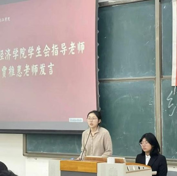 经济学院学生会的蓬勃发展离不开老师们的悉心指导与鼎力支持。会上,张颖、周晓睿、张鑫、贾稚惠四位老师依次发言。老师们充分肯定了学生会过往工作取得的成绩,对新团队的组建表示祝贺,同时围绕组织建设、活动创新、服务同学等方面提出了宝贵建议,也指出了工作中需要改进的问题。老师们的殷切指导与嘱托,为学生会后续工作明确了方向、凝聚了力量。