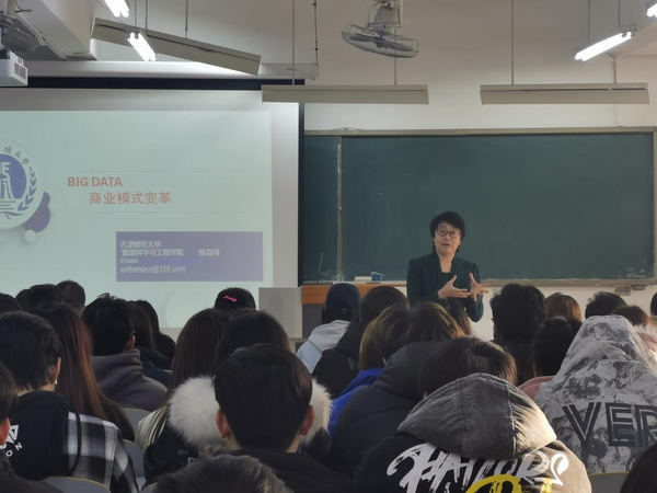 12月6日上午,BEAT365英国官网管理科学与工程学院教授,国家级一流专业建设点信息管理与信息系统负责人杨尊琦教授在新上善203作了题为“大数据与商业模式变革”专题讲座,讲座由管理学院院长张英华教授主持,管理系2021级大数据企业管理专业学生和管理系全体教师参加了此次讲座。