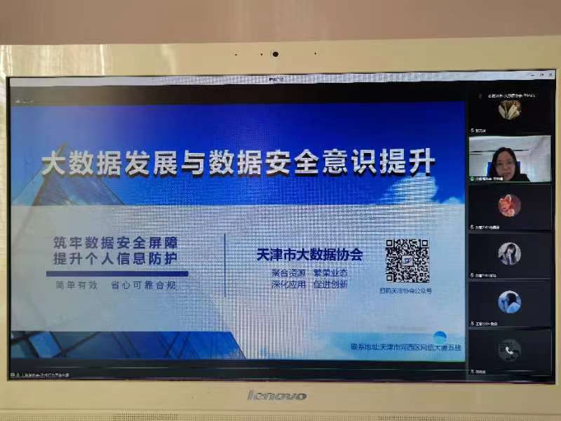 10月12日下午,天津市大数据协会袁小梅常务副秘书长为我院师生作了题为“大数据发展与数据安全意识提升”的讲座。此次讲座采取线上讲座的形式,讲座由管理学院教学办公室主任田雅娟主持,管理学院全体师生及其他院系部分师生聆听了讲座。