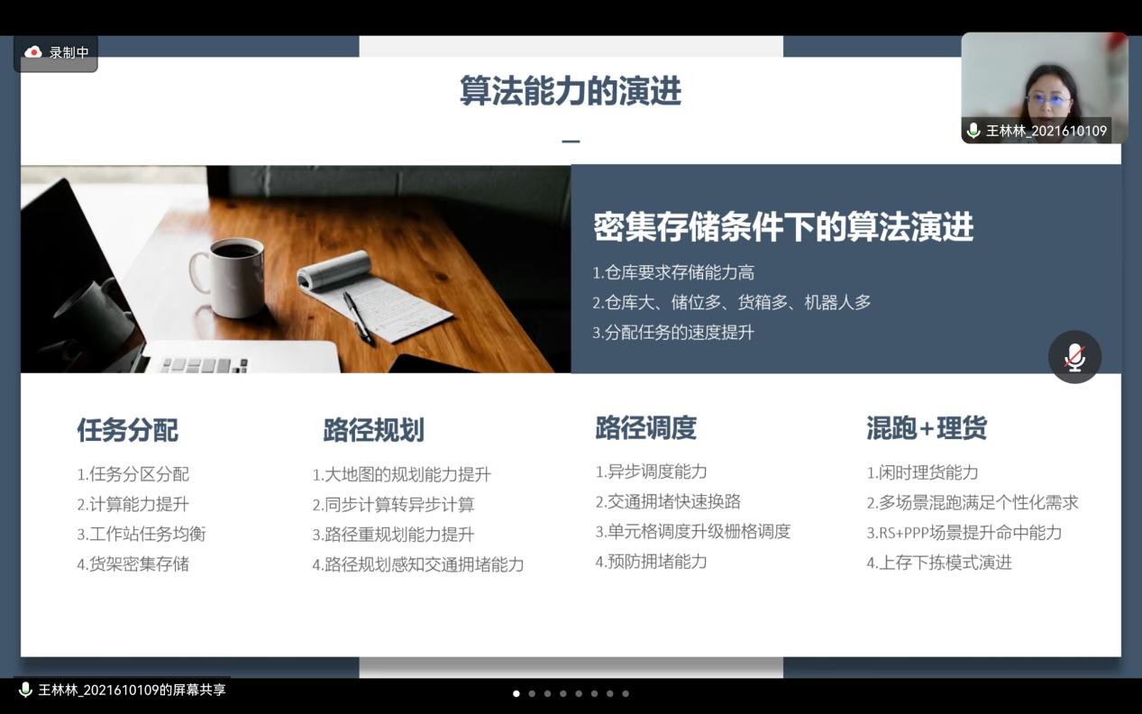 讲座中,王老师介绍了机器人的发展现状与未来,机器人任务分配优化、性能提升方案与分区方案结果展示。随后,讲解了在密集存储条件下和路调调度变化条件下改进的RS+P方案以及此方案的优势。