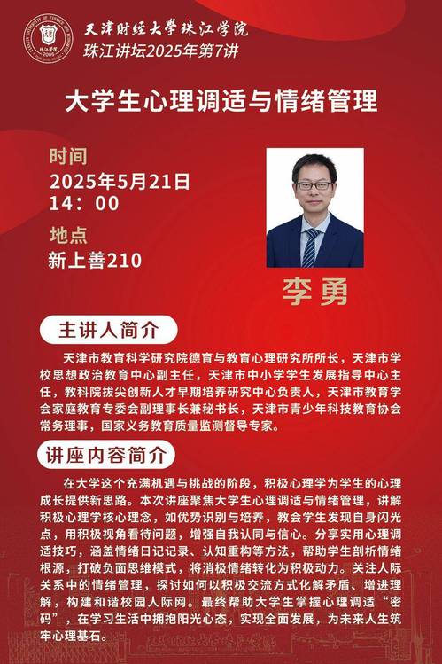 珠江讲坛预告|大学生心理调适与情绪管理