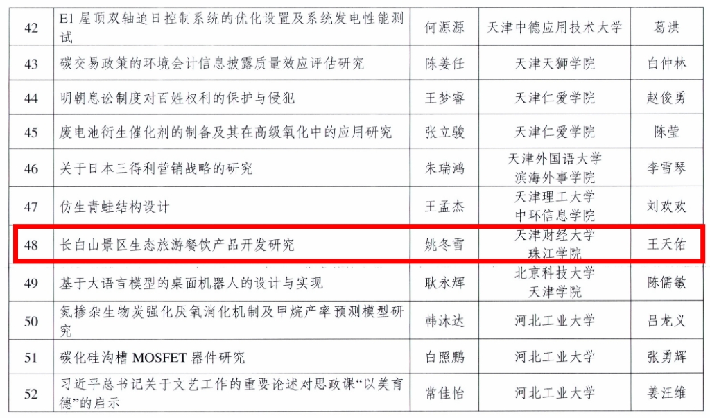 近日,天津市教委公布第十五届天津市级本科生优秀毕业设计(论文)评选名单,我院管理学院姚冬雪同学的毕业设计(论文)《长白山景区生态旅游餐饮产品开发研究》获评市级优秀毕业设计(论文)。该论文由王天佑老师指导完成。