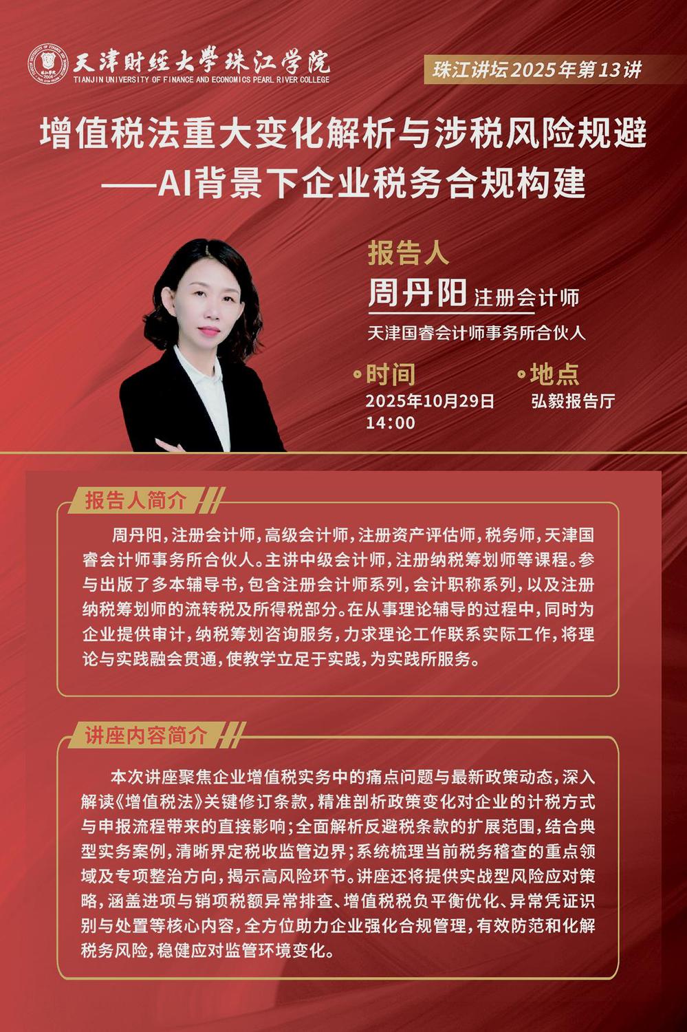 珠江讲坛预告|增值税法重大变化解析与涉税风险规避—AI背景下企业税务合规构建