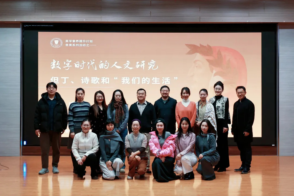11月26日下午,学院“美学素养提升计划”美育系列活动—《数字时代的人文研究:但丁、诗歌和“我们的生活”》讲座在弘毅楼音乐系演奏厅举办。讲座特邀北京大学外国语学院助理教授成沫担任主讲,艺术学院副院长曹鹏飞担任学术主持。学院图书馆和艺术学院师生代表百余人参加。