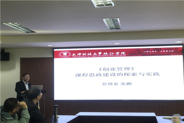张鹏老师讲授了如何将思政教育与创业教育有机融合的全章节思政点设计框架和突出实战、实用、实效的混合式教学法 。刘佳鑫老师从课程的育人目标、课程的思政元素设计和实践经验总结三个方面讲解了在《商务谈判》课程教学中如何将社会主义核心价值观、爱国情怀、职业道德和职业操守融入课堂教学的做法 。