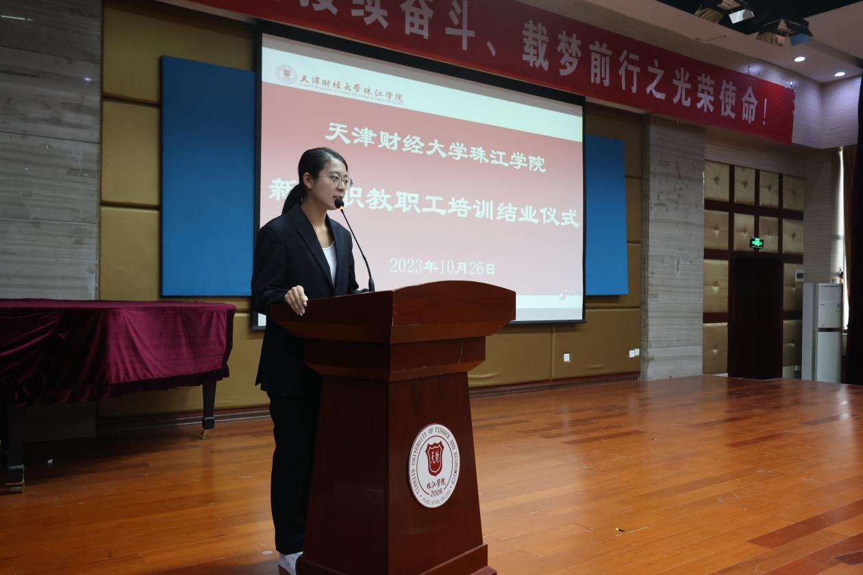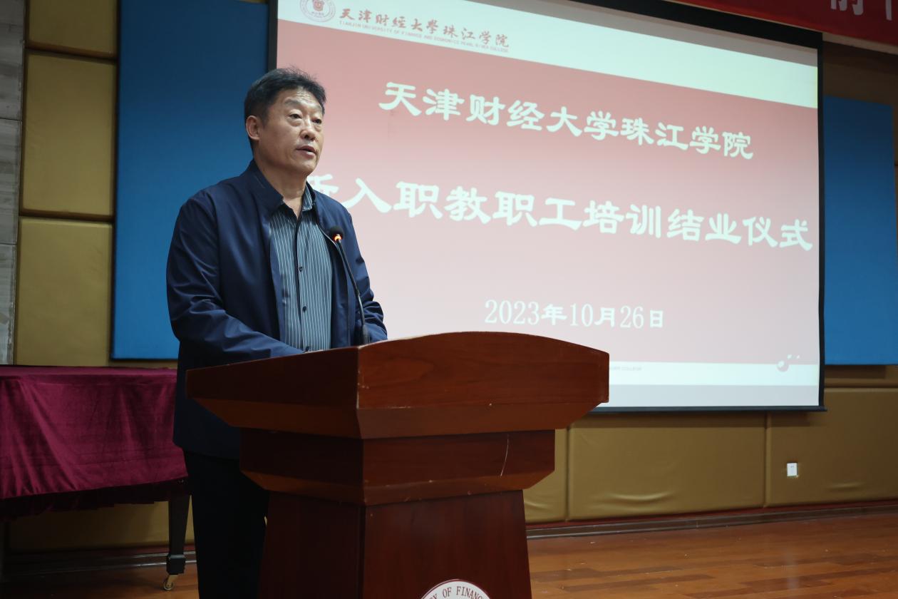 10月26日下午,学院2023年新入职教职工培训结业仪式在弘毅楼报告厅举行。学院党委书记靳术海出席结业仪式并讲话,100余名新入职教职工参加结业仪式,结业仪式由党委教师工作部(人事部)部长杨楠主持。