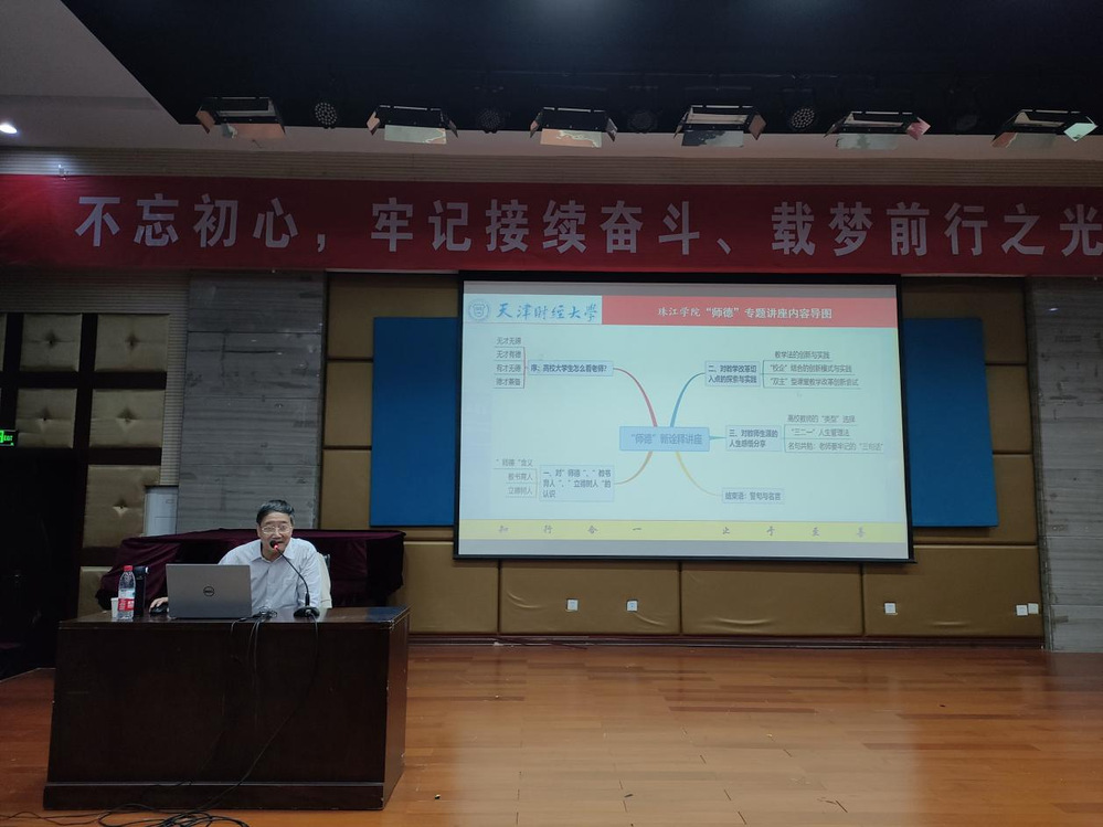 为进一步加强师德师风建设,提高新入职教职工职业道德素养,打造“有理想信念、有道德情操、有扎实学识、有仁爱之心”教职工队伍,10月25日下午,学院在弘毅楼报告厅举办新入职教职工师德师风专题讲座,管理学院院长张英华教授为新入职教职工上了一堂《从教四十年的教学生涯感悟--对‘师德’内涵的新诠释》师德师风教育课,100余人聆听了此次讲座。