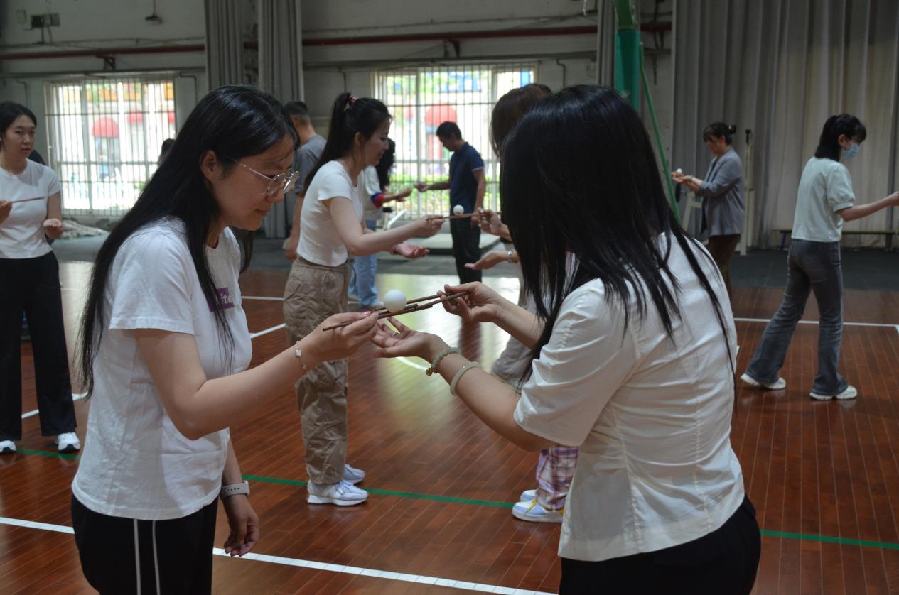 董惠娟教授围绕教师心理健康现状、情绪调节和心理调适等方面对教师进行辅导,就如何缓解压力为教师讲解了开怀大笑、阅读书报、换个角度等20条常用的心理减压技巧,并现场带领教师体验了“筷子运球”“不倒森林”两项互动训练,有效引导广大教师学会减压放松技巧,调整心态、缓解压力,促进团体中成员之间相互协作能力和人际关系的发展。最后,在躯体放松训练中,引导教师进入沉静、忘我的状态,放松大脑,解除平日的疲惫与焦虑。