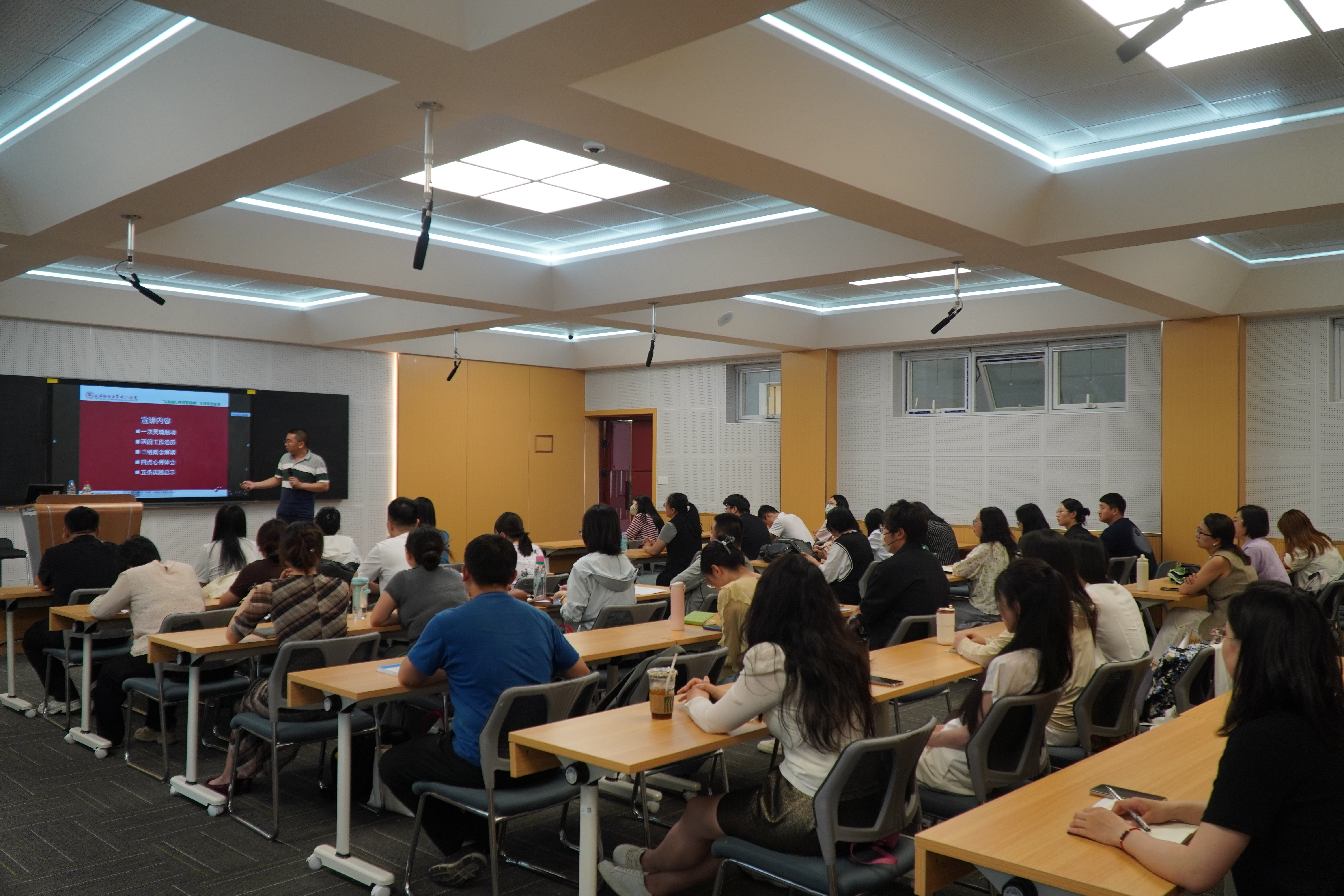 本次宣讲活动邀请管理学院管理系副教授、企业管理教研室主任余耀东和经济学院金融系副教授赵星担任主讲人,宣讲会上,两位主讲人登台讲述生动鲜活的教育故事,用实际行动诠释了教育家精神的深刻内涵。