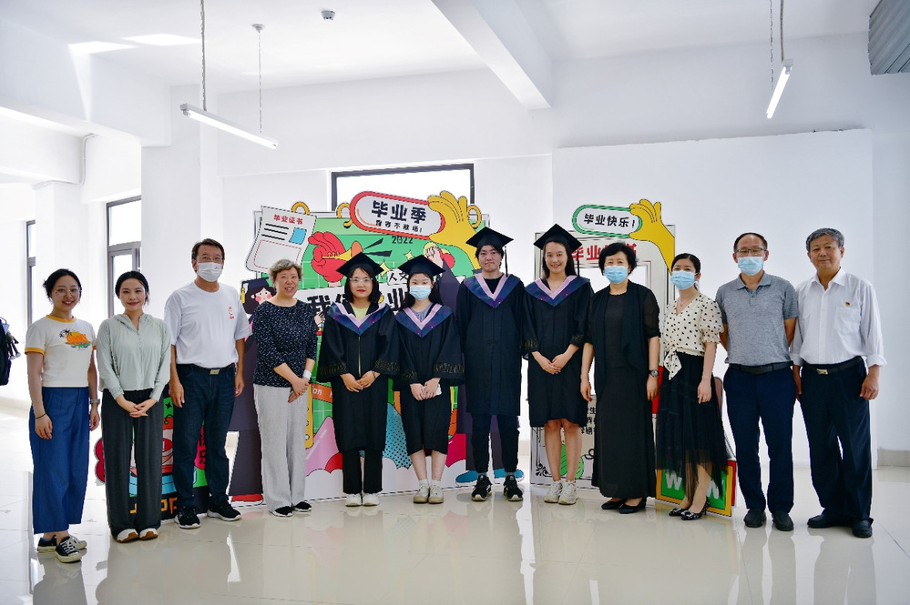来到中和楼三楼中厅,大家惊喜地发现贴心的老师们早就准备好了“拍照神器”,迫不及待地换上崭新的学士服,热情邀请教育系主任一起拍照留念。拍照氛围热烈、愉快,恰逢前来视察的任院长、杨院长、崔院长等领导,“同学们,祝你们前程似锦,毕业快乐!”任院长和蔼地说。