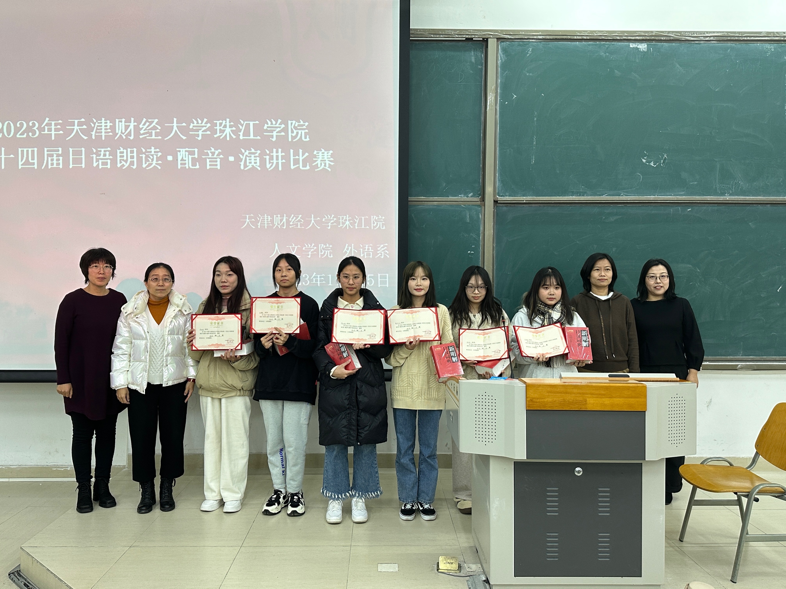 比赛最终评选出一、二、三等奖共24组,优秀奖16组。其中,日语2301班罗佳丽获得朗读组一等奖,日语2202班高凡智、吴丽媛获得配音组一等奖,日语2102班黄菲亚获得演讲组一等奖。