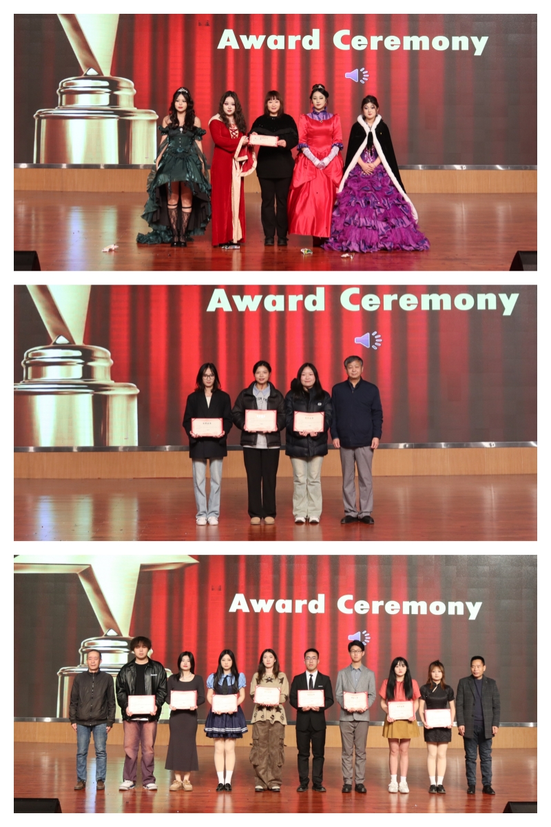 比赛强强对决,扣人心弦。AG舞团的开场舞热情澎湃,点燃现场氛围;英文歌曲情真意切,醉人心扉;配音作品如幻似真,令人沉醉;英语演讲语言流畅,内容精彩;话剧表演台词生动,表演张力十足。来自英语2103班的李萌、荆雨欣、郭佳瑶、孙小淇(团队)荣获特等奖,来自广告2202班的周琳琳、工专2303班的王纯以及英语2203班的杨欣、王丫诗(团队)荣获一等奖,其他同学分别荣获二、三等奖及优秀奖。培训部胡晓玲部长对整场达人秀决赛进行了点评,从语言能力、文化理解和创新能力等多方面对参赛者给予肯定,并基于自身留学经历,和同学们分享了实用英语学习方法,鼓励同学们继续提高英语水平。