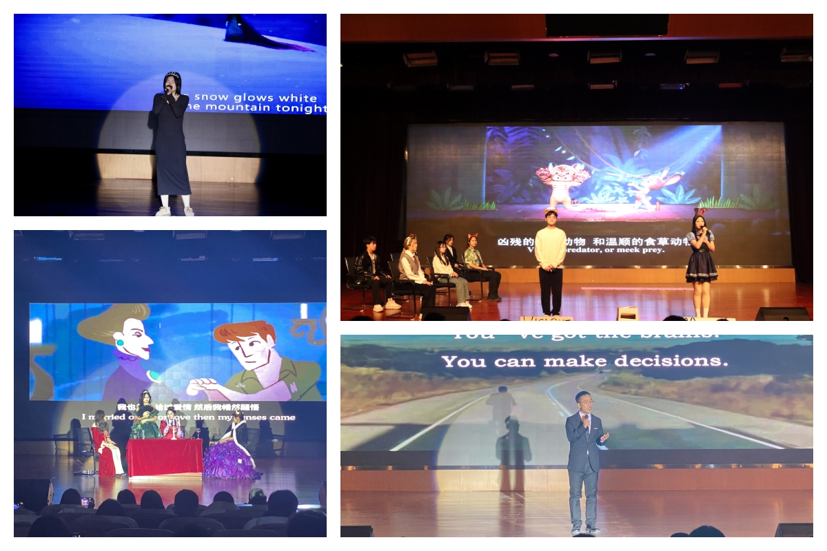 本次赛事于10月9日启动,全院300余人报名参赛。经过初赛和复赛的层层选拔,成功晋级总决赛的12组选手,倾情展示,奉献了一场达人秀英语盛宴。他们的参赛作品形式多样,内容丰富,包括英语歌曲、英语演讲、英语戏剧以及英语配音,充分展现了选手们的创新思维和扎实的英语运用能力。选手们虽来自不同的专业背景,却同样在英语实用及表现层面展现出了较高的英语水准。