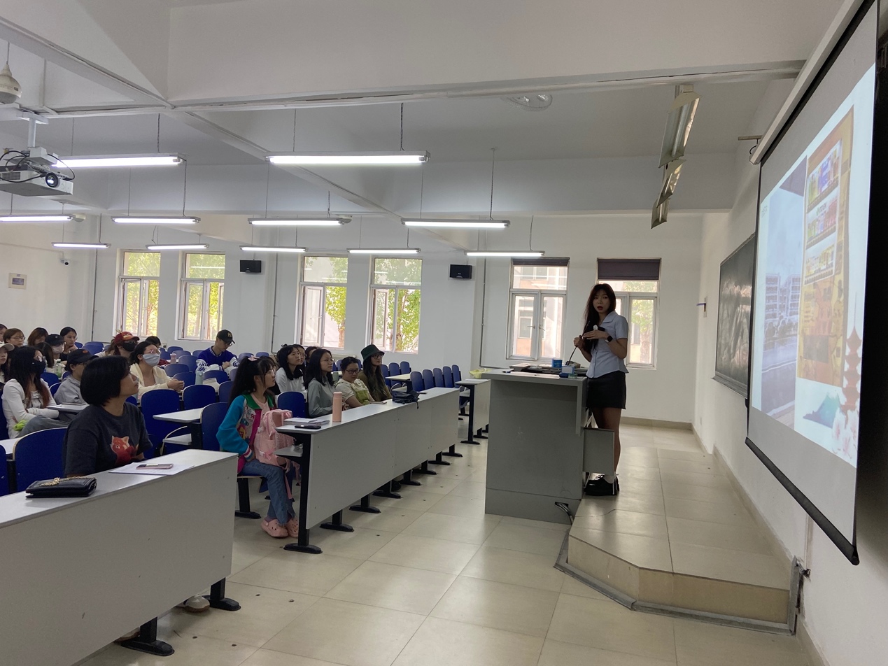 交流会的下半场,留学归来的20级学姐黄羽北、柳琪、徐怡然、刘璟婷通过精美的PPT和视频,带领学弟学妹们体验了不一样的学习氛围和异国文化。