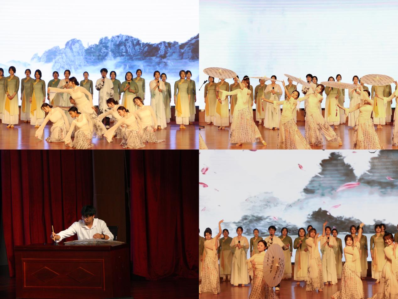 活动尾声,人文学院艺术团带来歌舞表演《兰亭序》,歌声悠悠,汉服飘飘,中华传统文化瑰宝书法与京剧唱腔和古典舞之美巧妙融合,将传统文化的艺术底蕴演绎得淋漓尽致。