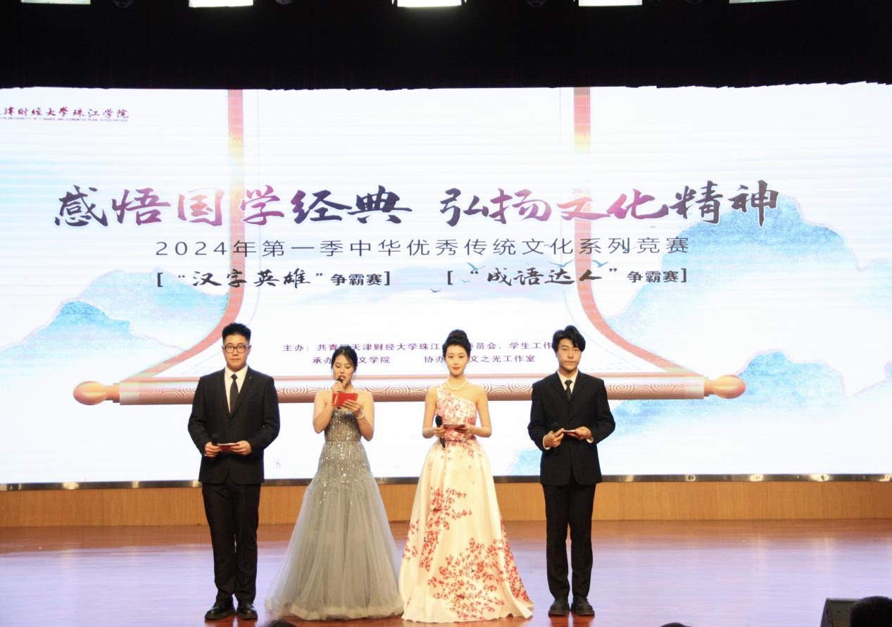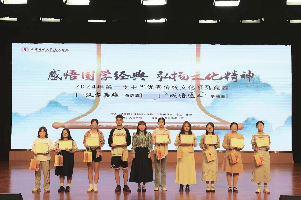 本季竞赛由学院团委、学生工作部主办,人文学院承办,包括“汉字英雄”争霸赛和“成语达人”争霸赛两个专项比赛。各二级学院同学积极参与,经过初赛选拔,最终30位选手入围决赛。本季“汉字英雄”争霸赛以“五亲五行”为主题,设有“贯古通今”“溯源求本”“字里乾坤”三个竞赛单元;“成语达人”争霸赛以“江河湖海”和“日月星辰”为主题,分为“冲锋陷阵”“激流勇进”和“一举夺魁”三个关卡。参赛选手传统文化底蕴深厚,对传统文化知识了解透彻,比赛过程高潮迭起、气氛热烈,选手精彩的答题赢得了观众的频频掌声。现场观众积极参与互动答题,与选手们一同感受汉字和成语的文化魅力。期间,人文学院文化传播系张强副教授以汉字、成语为媒为现场同学讲解了传统文化知识。最终,经过激烈角逐,来自人文学院的张玲和刘璐菲两位同学分别摘得“汉字英雄”和“成语达人”桂冠。