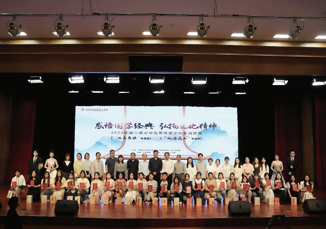 为贯彻落实习近平总书记视察天津重要讲话中提出“四个善作善成”的重要要求,在推动文化传承发展上善作善成,学院举行了“感悟国学经典,弘扬文化精神”2024年第一季中华优秀传统文化系列竞赛。5月14日在中和楼报告厅成功举办决赛,学院党委书记靳术海,党委副书记、纪委书记白晓,院长助理郭鑫出席,学院团委、学生工作部、资产部、培训部、各二级学院学生工作办公室等部门相关负责同志,以及800余位学生代表参加了活动。