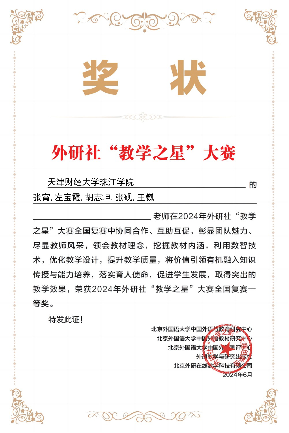 近日,由外研社举办的“外语教材的有效使用:数智融合,创新育人”教学之星大赛(本科英语组)成绩公布,人文学院张宵团队和宗蕊团队分别获得英语类专业组全国复赛一等奖、大学英语组全国复赛二等奖。