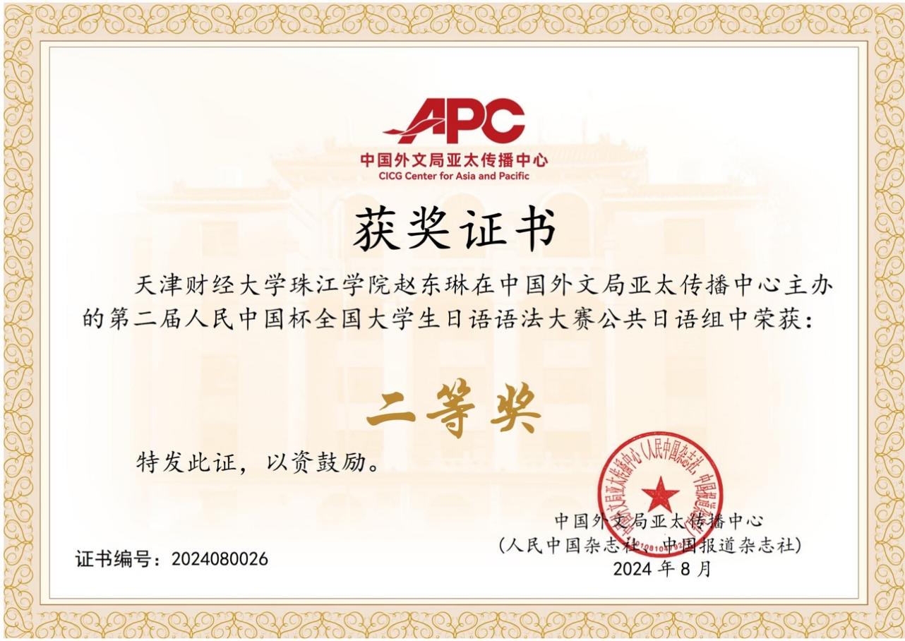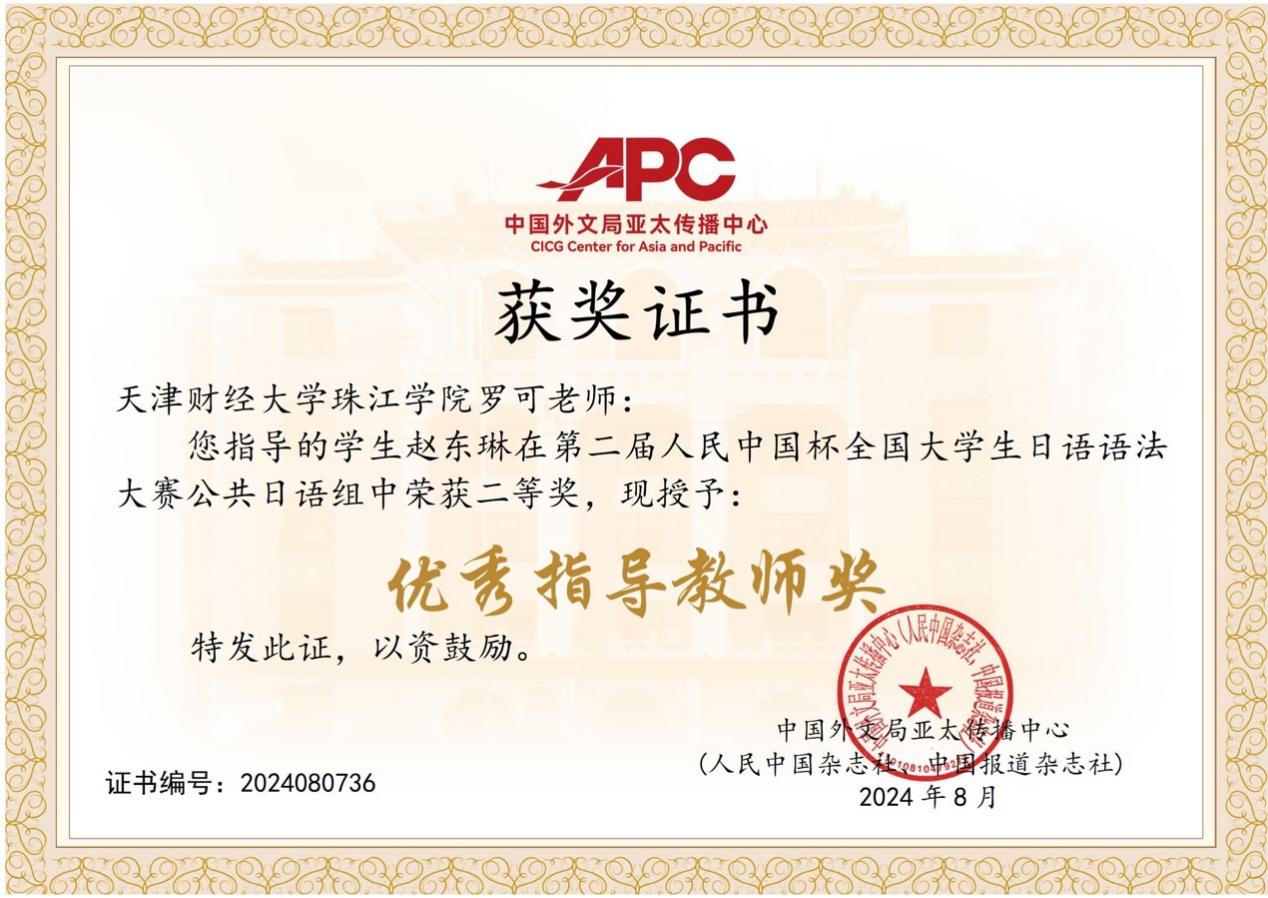 本次大赛由中国外文局亚太传播中心主办、广东省翻译协会承办。学院学生在指导教师的悉心指导下,通过备赛和参赛,更深入地理解了日语语法规则、句型结构等语法知识,提高了语法水平和语言技能,最终斩获佳绩,展现了扎实的日语语言基本功。