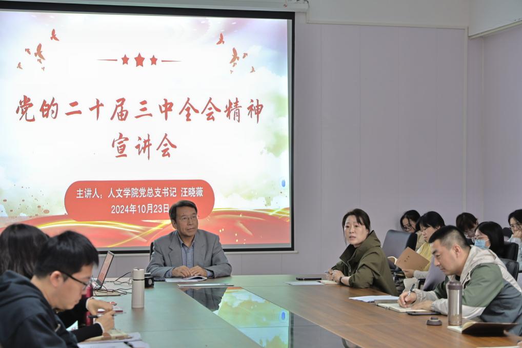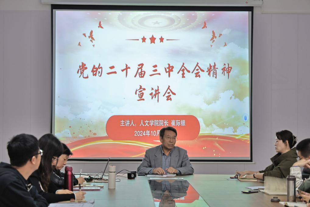为深入学习贯彻党的二十届三中全会精神,引导全体教师切实把思想和行动统一到全会精神上来,10月23日下午,人文学院在中和楼B309举办学习贯彻党的二十届三中全会精神宣讲会。