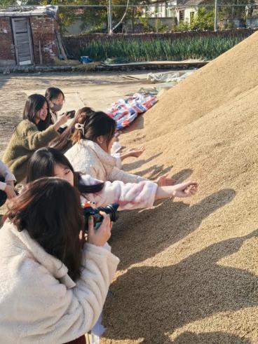 金秋时节,稻谷飘香。实践教学过程中,师生们走进有机稻种植基地,种植户吴克建为大家讲解水稻种植的过程,分享自己探索科学种植培育稻蟹混养的故事,并现场演示稻谷脱粒成米的加工工艺。同学们情不自禁地捧起稻谷,交流心得,在理论与实践的融合中深切体会到“一粥一饭,当思来处不易;半丝半缕,恒念物力维艰”。