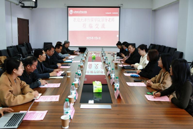 3 月 6 日上午,天津传媒学院文化传播与管理学院一行8人来我院人文学院访问交流。交流会在中和楼 309 会议室成功举行。人文学院院长崔际银教授、院长助理张航教授,天津传媒学院文化传播与管理学院副院长崔晓晓副教授、教学督导宗振举副教授出席会议。天津传媒学院文化传播与管理学院广告系主任成洁副教授、汉语言文学系主任郭婷婷老师、英语系主任张鑫副教授,人文学院文化传播系广告学教研室主任谢择月老师、中文教研室主任钟学艳副教授,人文学院外语系英语教研室主任张宵副教授、大学外语教学部副主任王俊义副教授,以及双方相关专业教师等参加了会议。会议由人文学院文化传播系主任张强副教授主持。
