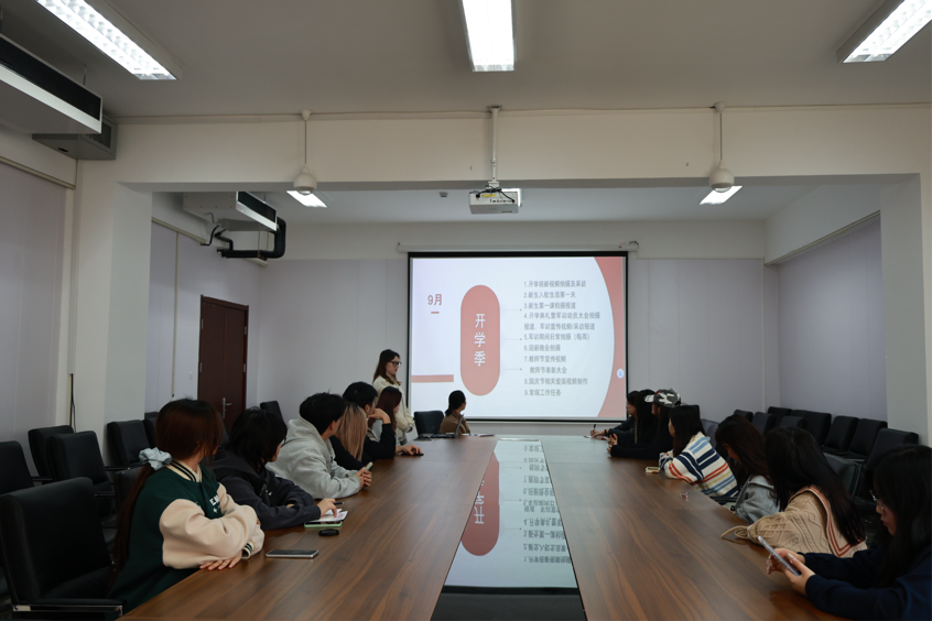 接着,记者团副团长巩令姝和李欣霖同学分别介绍了本年度记者团拍摄技术和新闻采编能力的培训计划。学生记者团一组组长刘佳星同学和副团长兼二组组长王省懿同学对记者团开设栏目《寻画觅芳年》本学期的宣传方向、内容及各组具体工作安排进行分析讲解。