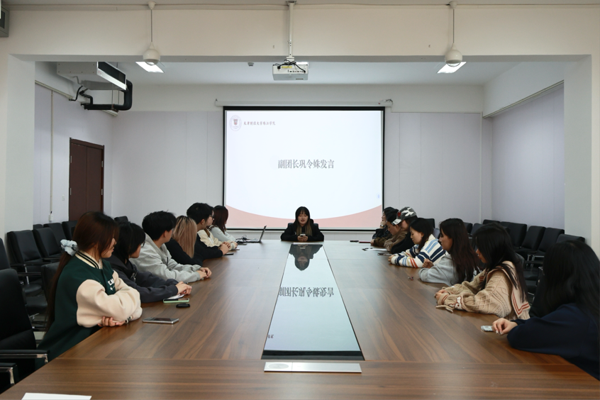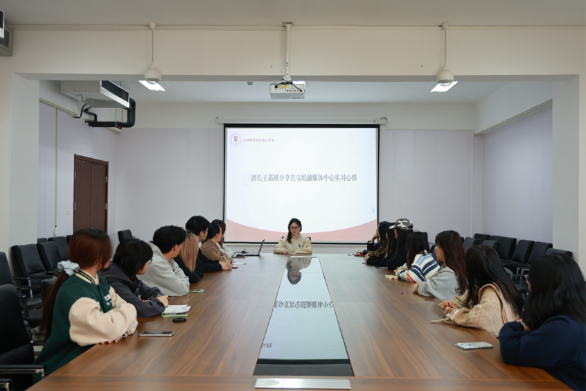 其次,记者团执行团长王嘉祺同学对记者团本年度工作任务做出具体安排,并分享了她在宝坻融媒体中心实习的心得体会。她表示新闻人应具备时效性,客观真实性和团队合作能力,沉下心认真打磨作品。