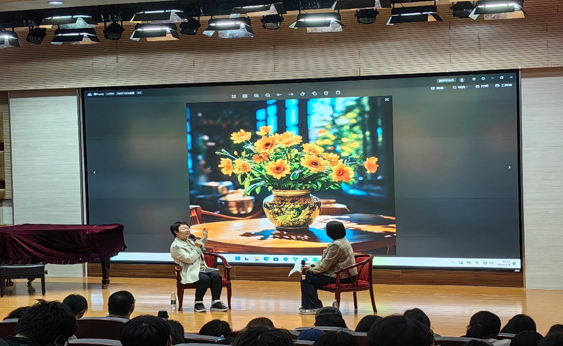 面对AI技术广泛应用,国际中文教育实践应如何做出适应性调整?这个教育者与学习者都极大关注的问题。曹老师从国际中教育名称演变、教学对象改变、教学手段变化等方面谈起,娓娓道出数十年间国际中文教育面对不同历史时期因应时代需要做出的适应性调整。袁老师提出AI技术融入国际中文教育领域,是否意味着教育难度在提升?对此,曹老师表达开放性观点,现场为同学们展示她利用AI工具发出指令生成的图、PPT 。对于AI技术在教育使用过程中产生的伦理争议,曹老师明确强调教育特质之一是即时性的情感交流,这是目前AI技术无法企及的。国际中文教育过程要读懂对象,充分利用AI工具作为一个教学手段,有针对性、有情感地进行跨语言、文化输出。