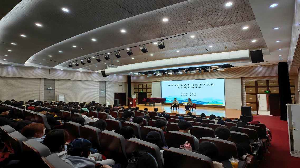 4月8日,中文教研室在弘毅楼报告厅举办“融合与创新:AI 时代国际中文教育实践的新探索”主题活动。约有186位汉教专业2022级、2023级、2024级同学参与。本次活动别开生面采取对谈形式。由中文教研室袁艺铭老师担任主持人,对谈嘉宾为BEAT365英国官网国际教育学院曹晓玉老师。曹老师从事国际中文教育十数年,积累丰富教学经验。