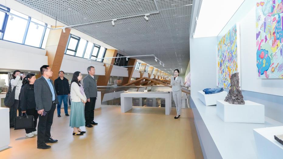 会议之前,在文化传播与管理学院院长武小宇、广告专业督导宗振举等领导的热情接待下,学院代表团参观了无终艺术馆。馆内作品全方位展示其产学研创融合教学的丰硕成果,让代表团成员在产学研创方面深受启发,地方产业、艺术与学术的深度融合新模式,为我校人才培养和社会服务提供了新的思路与方向。