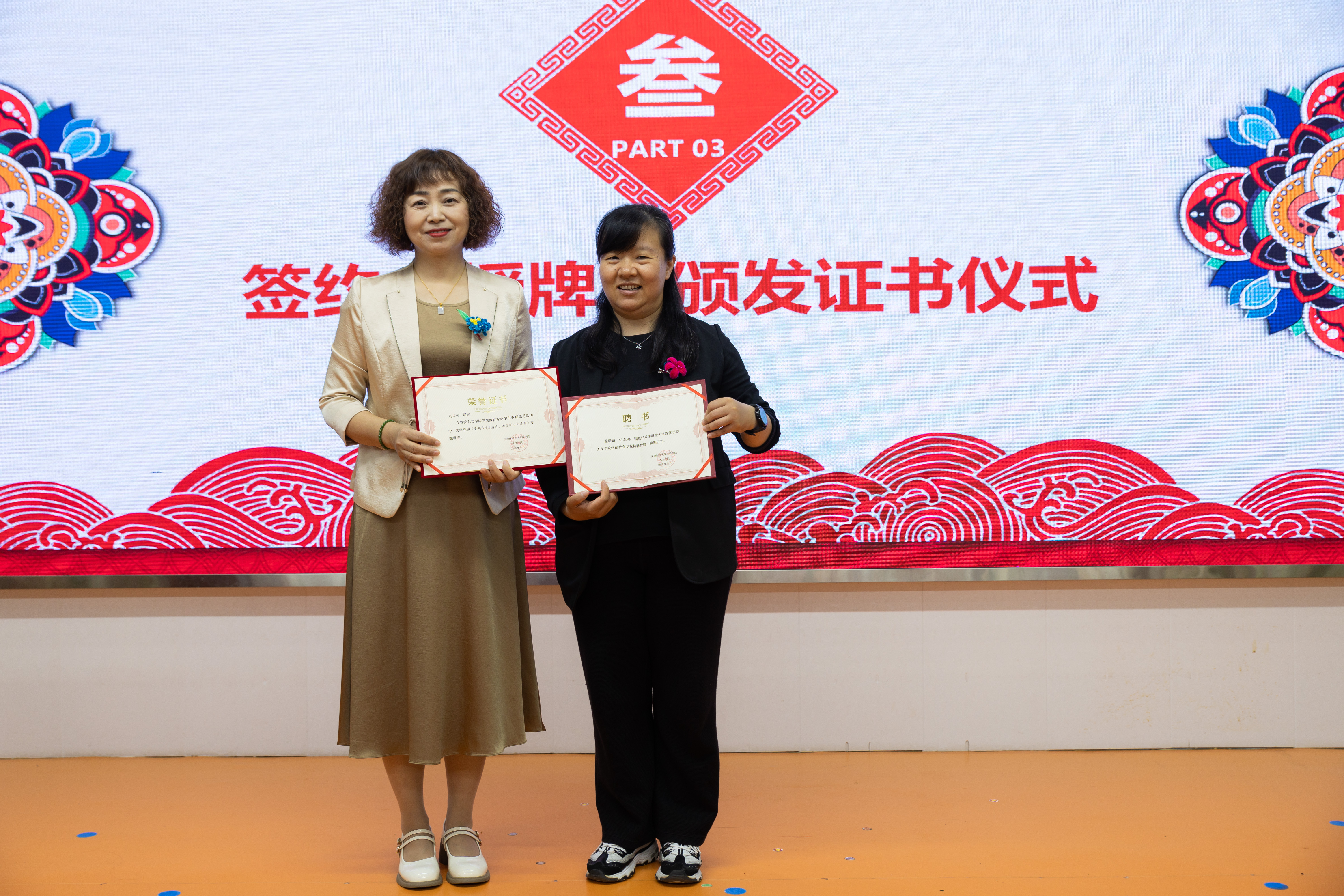 左宝霞教授向刘玉娜园长颁发“学前教育专业特聘教授”聘书