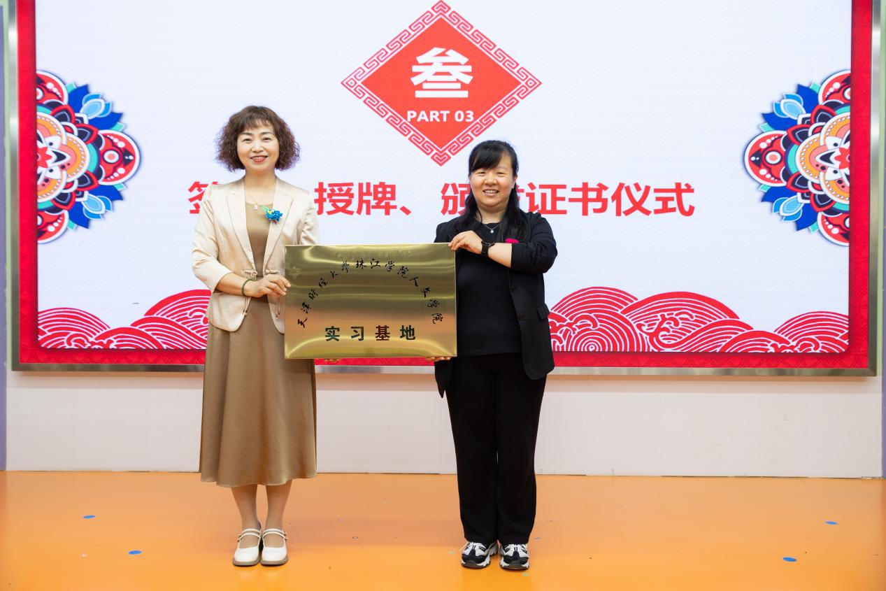 随后,人文学院院长助理左宝霞教授为淮盛幼儿园授予“实习基地”牌匾,并向刘玉娜园长颁发“学前教育专业特聘教授”聘书,正式建立双向人才交流机制。