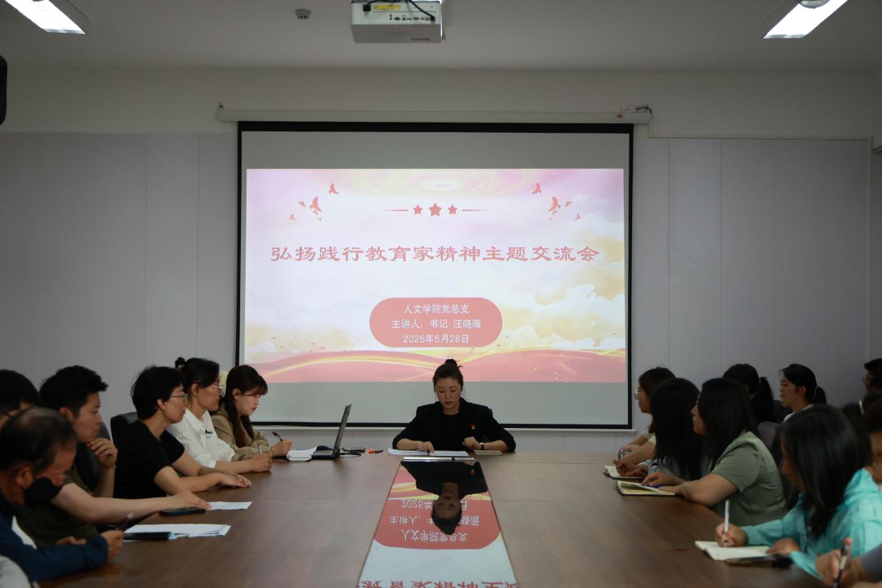 5月28日,人文学院党总支在中和楼B309组织开展弘扬践行教育家精神主题交流会,此次会议由人文学院党总支书记汪晓薇主持,人文学院党总支全体党员参加会议。