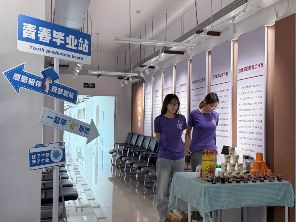 人文学院特设茶歇区,让毕业生在办理手续间隙感受学院的温暖,传递学院人文关怀。同时,充满仪式感的拍照打卡地,为毕业生们定格校园青春记忆,也承载着学院对毕业生的美好祝福。最后,在我院师生高度协作配合下,顺利完成482名毕业生离校服务工作。