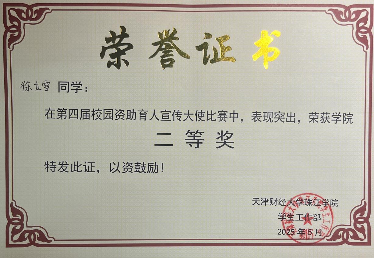 人文学院学工办对“资助育人宣传大使”比赛给予了高度重视,大力宣传比赛内容,鼓励学生积极参赛,资助工作负责教师根据每位参赛同学自身情况特点,从PPT制作、演讲内容、方法和心理、仪容仪表等方面一对一悉心指导学生充分备赛。两名参赛同学的获奖即彰显了珠江学子的优秀素养与潜力,又体现了人文学院资助工作的细心与温情。未来,人文学院将继续大力宣传资助育人政策,让更多同学能够深入了解国家资助政策,充分发挥资助育人的积极效能,为学院资助育人工作的推动贡献力量!