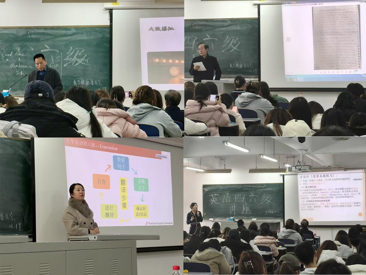 11月19日下午,人文学院大学英语教学部在日益101教室面向全院学生举办了一场大学英语四级考试专题指导讲座,帮助学生把握考试要点、提升备考效率。讲座现场座无虚席,气氛热烈。