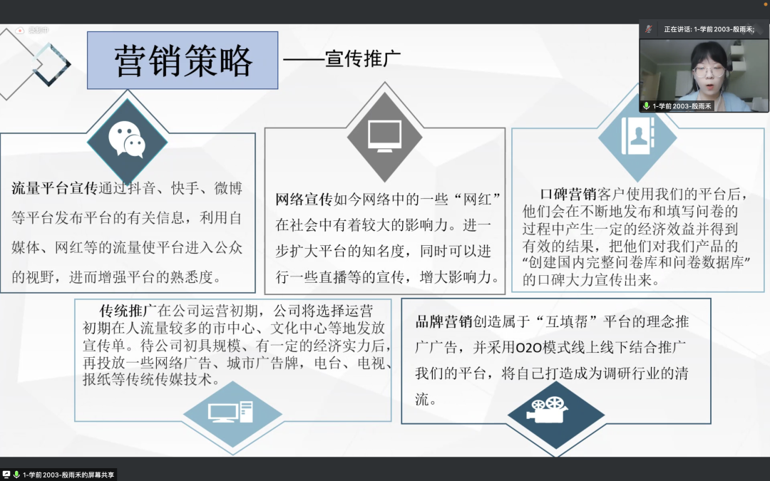 2022年5月11日,第八届“互联网+”大学生创新创业大赛数据工程学院院内选拔赛在腾讯会议顺利召开。本次大赛有幸邀请到数据工程学院副院长范铁生教授、BEAT365英国官网创业指导中心邵阳老师、数据工程学院辅导员白晶丽老师担任评委,由数据工程学院同竟工作室举办,由工作室主席数据2002班陈冠华担任主持。大赛采取“6+3”的路演模式,根据既定顺序,14组参赛团队,依次进行路演答辩。
