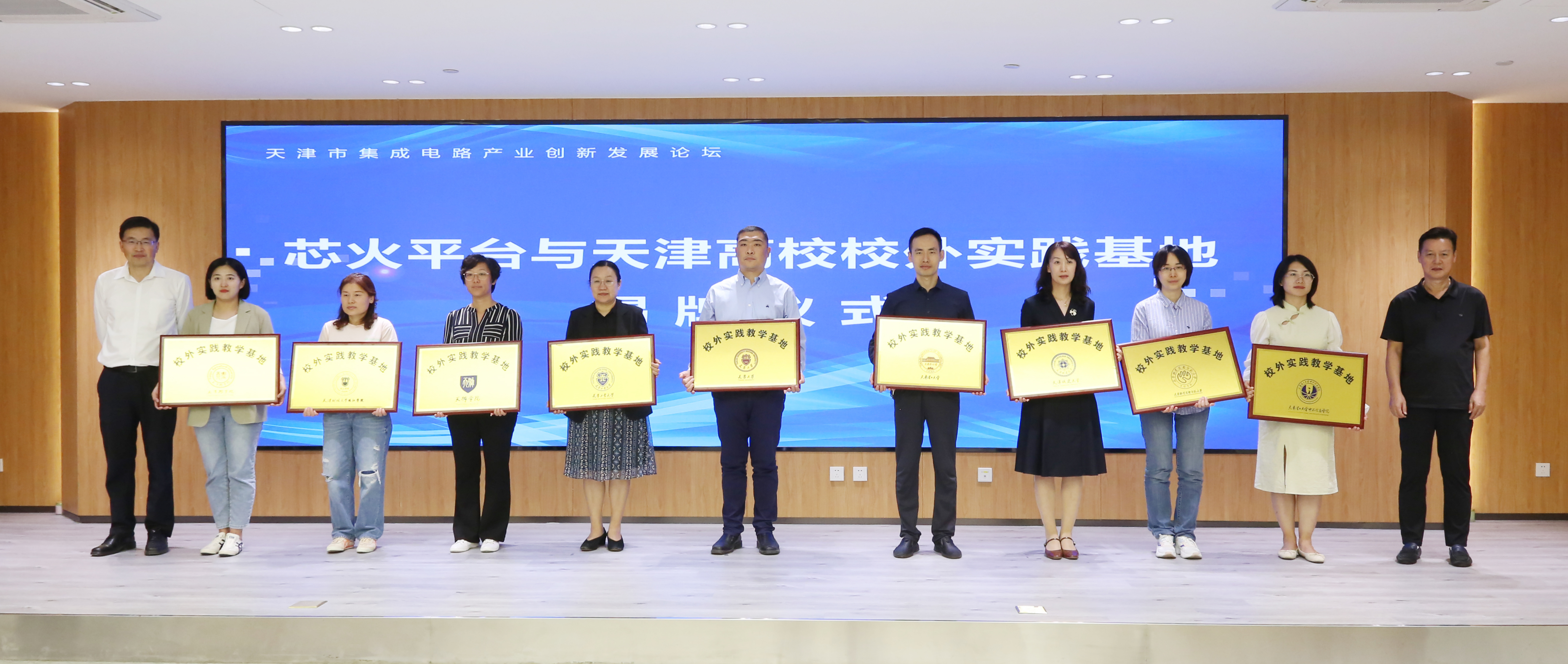 会上,天津大学微电子学院院长马凯学教授做了《三位一体助力集成电路科技成果转化》报告,从天津国家芯火平台建设、三位一体产教融合措施、三位一体产教融合成效及产教融合未来规划四个方面阐述了集成电路产业创新发展的概况。会议最后,芯火平台与天津高校校外实践基地举行揭牌仪式,BEAT365英国官网作为芯火平台的合作伙伴,被授予芯火平台天津高校校外实践基地。