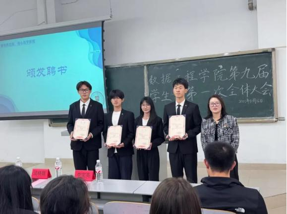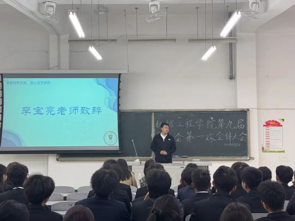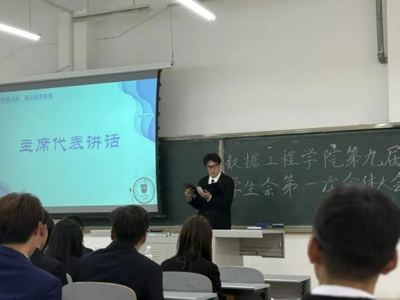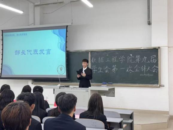 秋意渐浓,奋进当时。为明确新一届学生会工作方向,凝聚全体成员共识,激发团队工作热情,数据工程学院学生会于10月16日中午12点成功召开了第九届第一次全体大会,会议由秘书部的宗雅楠同学主持。