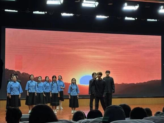数据工程学院的剧目《破晓》以1919年巴黎和会中国外交失败、山东权益被转让给日本为背景,展现了民族危亡之际爆发的五四运动。该剧生动诠释了“爱国、进步、民主、科学”的五四精神,刻画了青年学生在国家命运转折点上展现的使命与担当,传递了“不忘来路、传承薪火”的信念。