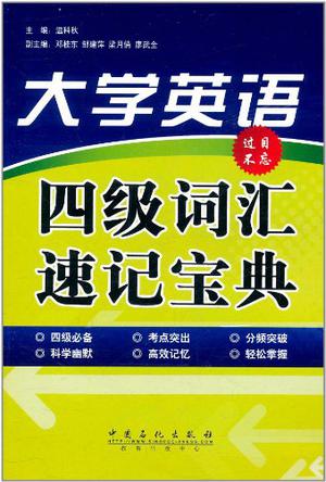 《大学英语4级词汇速记宝典》主要内容简介:在英语的实际学习中,词汇记忆是头等大事,也令人头痛不已。《大学英语4级词汇速记宝典》长岛“凡词三思而后记”(即思读音、思拼写、思含义)《大学英语4级词汇速记宝典》编委全部来自大学英语教学科研第一线,精心编写本词汇宝典,力图打造全新的词汇“速记活用”平台,全力辅助天之骄子们登上四级词汇宝鼎,迅速提升英语的综合应用能力。
