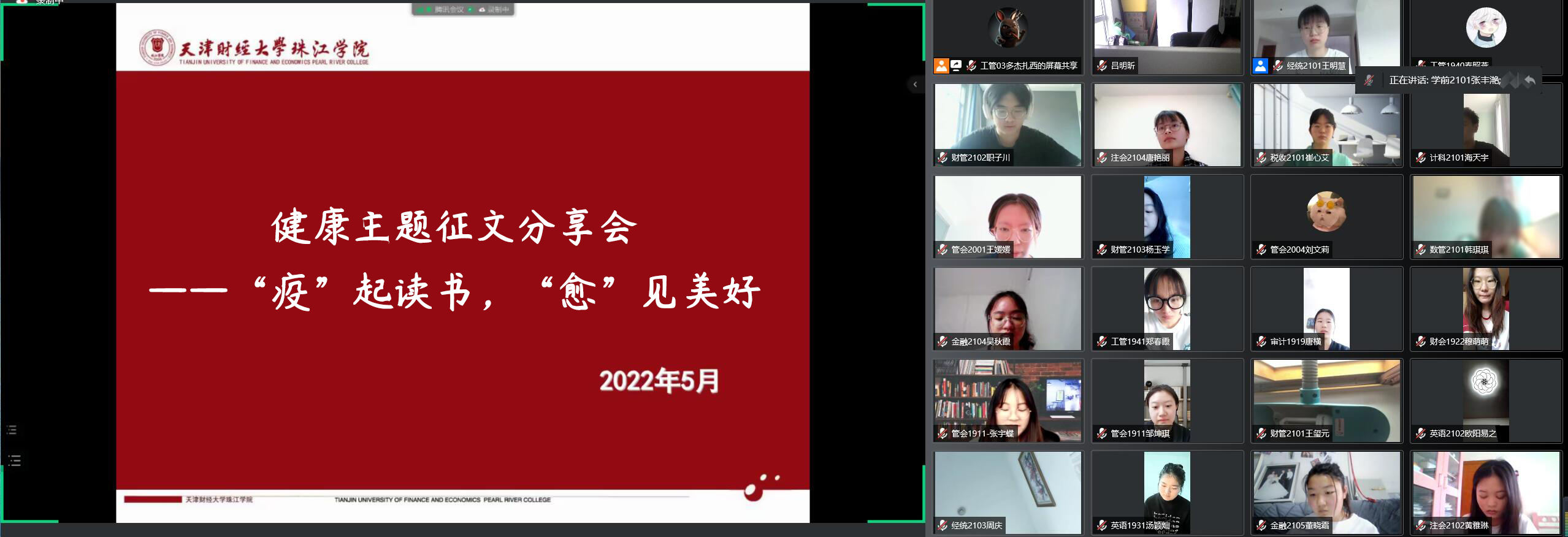 5月22日中午,由图书馆书源工作室主办,以“疫”起读书 “愈”见美好为主题的征文分享活动,在腾讯会议室成功举办。