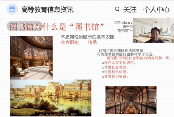 本期培训主题为“图书情报学科发展态势与领域热点”。培训内容包括图书馆和图书馆学概念、图书馆学学科范式、图书馆学领域热点等问题。