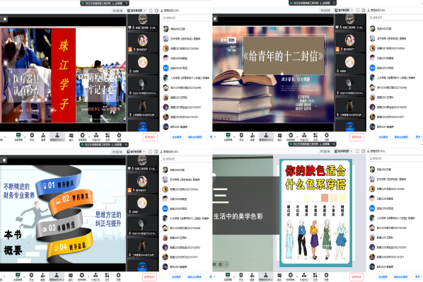 本次荐书比赛以“奋进新征程 阅读颂辉煌”为主题,以组队的形式,每组选定一本图书共读讨论后形成本书的思维导图,并选取一名代表对本组阅读图书进行讲解和推荐。决赛采用线上会议形式,分为人文赛道和专业赛道,在线观众达200余人。选手们思路清晰、语言生动,通过演讲的形式对所荐图书的内容、阅读感受及推荐理由进行了阐述。经过激烈的角逐,结合线上观众和评委投票,最终得出评选结果。人文赛道:管理学院代表队的《请党放心 强国有我》获得一等奖、人文学院代表队的《给青年的十二封信》获得二等奖、数据工程学院代表队的《人世间》获得三等奖、管理学院代表队的《荒漠里有一条鱼》获得优秀奖;专业赛道:管理学院代表队的《从总账到总监:CFO的私房财务笔记》获得一等奖、艺术学院代表队的《色彩构成》获得二等奖、经济学院代表队的《富爸爸穷爸爸实践篇》获得三等奖、经济学院代表队的《摩根财团》和艺术学院代表队的《走向新建筑》获得优秀奖。