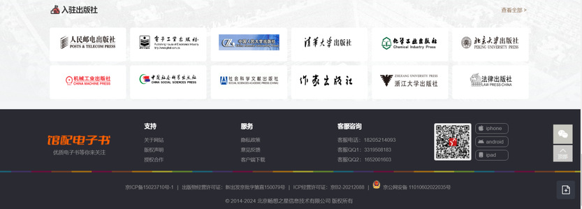 二、所有电子书均支持PC在线阅读、PC客户端下载阅读、移动浏览器在线阅读、手机APP下载阅读、支持手机微信阅读,手机APP部分图书提供听书服务。