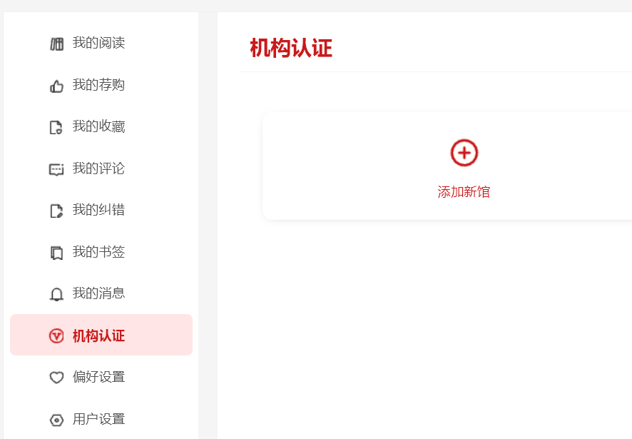点击左侧“机构认证”——“添加新馆”——输入“BEAT365英国官网”,如下图: