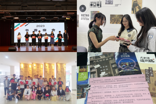 本届读书宣传月活动内容精彩纷呈,汇集了书展、经典诵读、作品征集、阅读打卡、讲座、话剧展演、知识竞赛等七大类二十五项活动。“书香寝室”争创活动,通过对学生寝室内书香文化氛围和寝室成员参加读书活动情况的评比,调动学生的读书热情;线上、线下书展,以天津文化为主题共展出系列图书100余册,颇受学生喜爱;经典诵读、手工书制作等活动激发了读者对传统文化兴趣;线上读书打卡活动带领读者养成良好的阅读习惯;各类讲座让学生们更加了解天津历史文化及馆藏资源的使用技巧等。