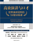 《高效演讲与口才:世界演讲冠军的59堂训练课》浓缩了世界演讲冠军戴文杰先生250000多场演讲实战经验,对知识型演讲、说服型演讲、励志型演讲、专业型演讲等各种类型的演讲进行了系统、详细的解读,极具指导性和实操性,是提升演讲能力与口才的读物。